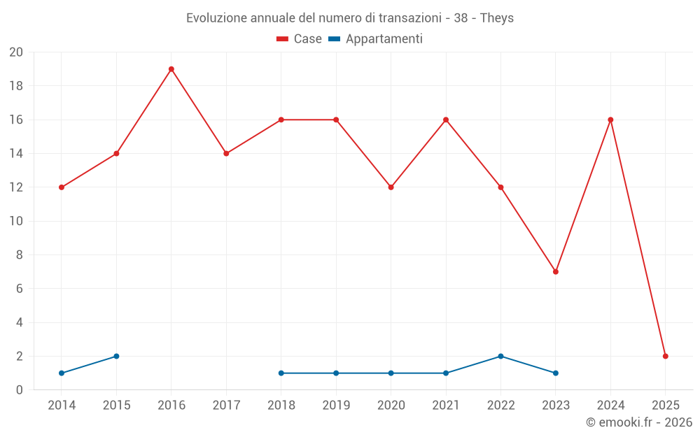 Il prezzo mediano sulle 19 transazioni di case degli ultimi 24 mesi nel comune di Theys era di 3 167 € al metro quadrato per un valore patrimoniale mediano di 283 323 €. In questo periodo il 60% delle transazioni era tra 2 319 e 4 466 € al metro quadrato (dal 2° all'8° decile).