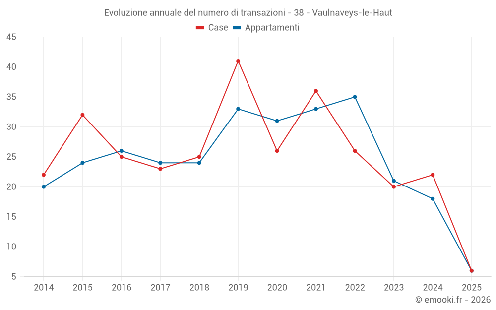 Il prezzo mediano sulle 19 transazioni di case degli ultimi 12 mesi nel comune di Vaulnaveys-le-Haut era di 3 919 € al metro quadrato per un valore patrimoniale mediano di 330 000 €. In questo periodo il 60% delle transazioni era tra 2 766 e 4 569 € al metro quadrato (dal 2° all'8° decile).