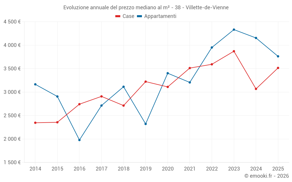 Qual è il prezzo al m2 delle case in Villette-de-Vienne?