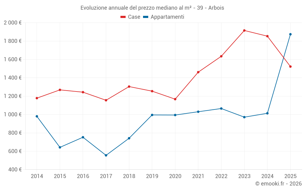 Qual è il prezzo al m2 delle case in Arbois?