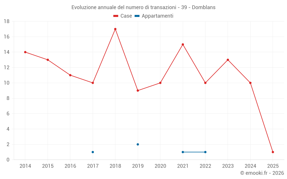 Il prezzo mediano sulle 16 transazioni di case degli ultimi 24 mesi nel comune di Domblans era di 2 120 € al metro quadrato per un valore patrimoniale mediano di 220 290 €. In questo periodo il 60% delle transazioni era tra 1 918 e 2 689 € al metro quadrato (dal 2° all'8° decile).