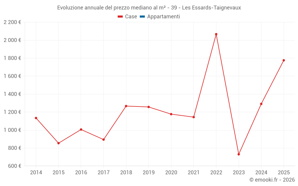 Evoluzione del prezzo mediano al m² degli appartamenti