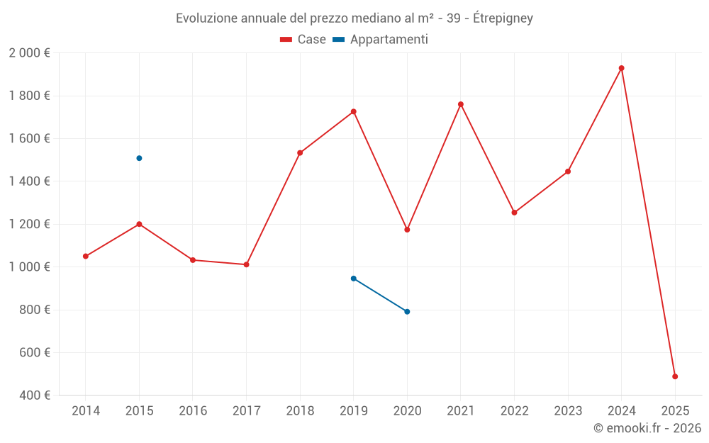 Evoluzione del prezzo mediano al m² degli appartamenti