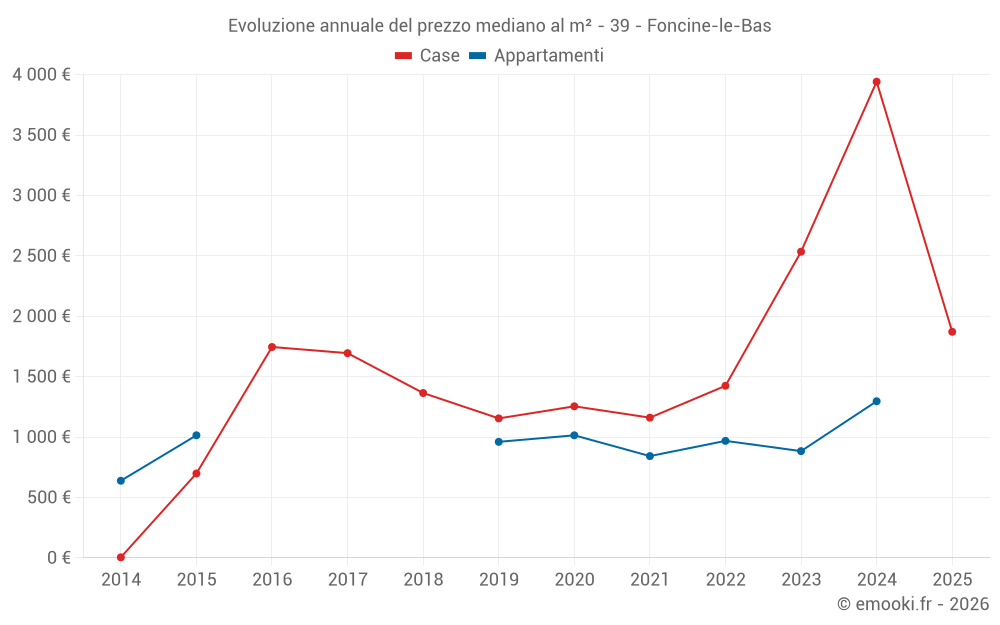 Evoluzione del prezzo mediano al m² degli appartamenti