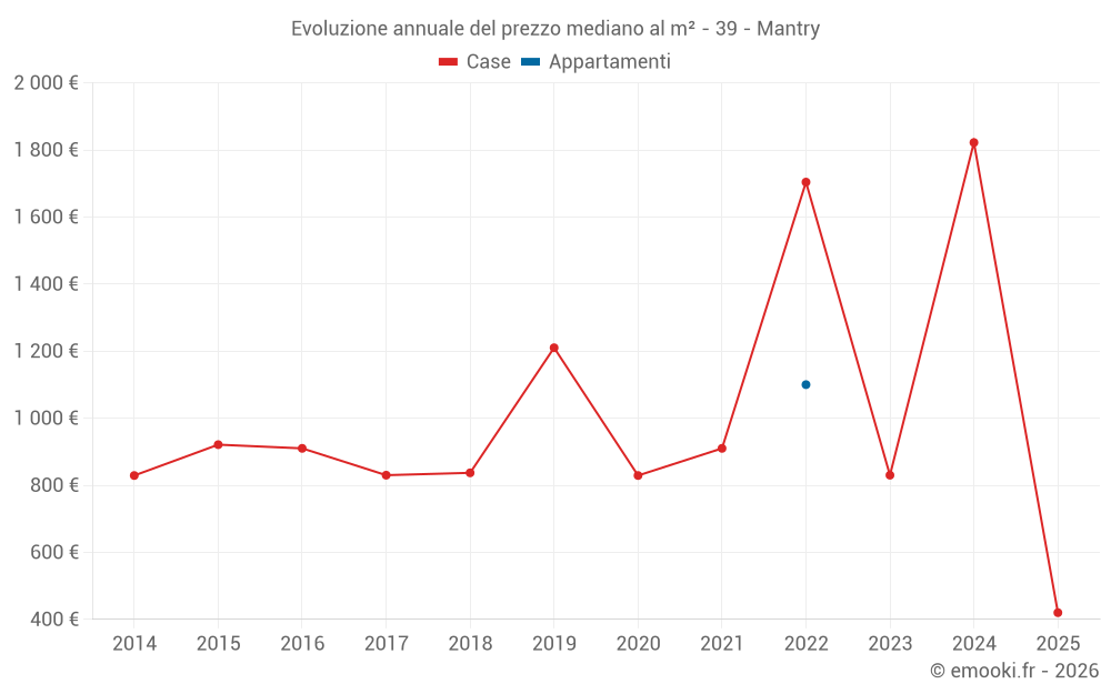 Evoluzione del prezzo mediano al m² degli appartamenti