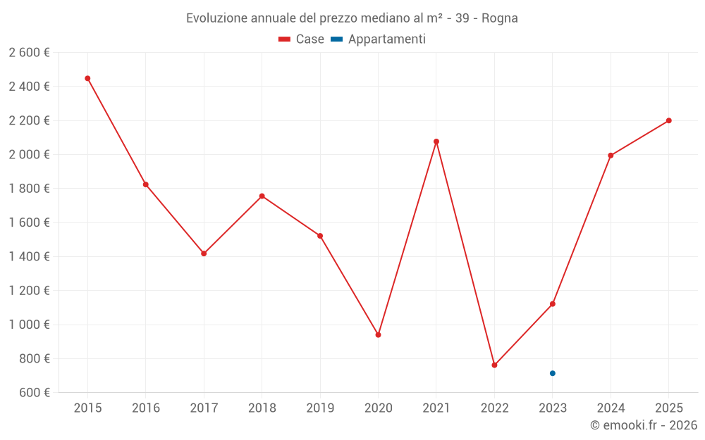 Evoluzione del prezzo mediano al m² degli appartamenti