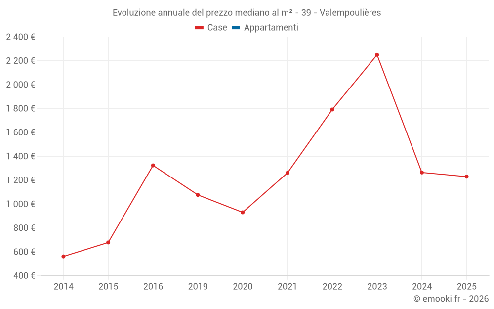 Evoluzione del prezzo mediano al m² degli appartamenti