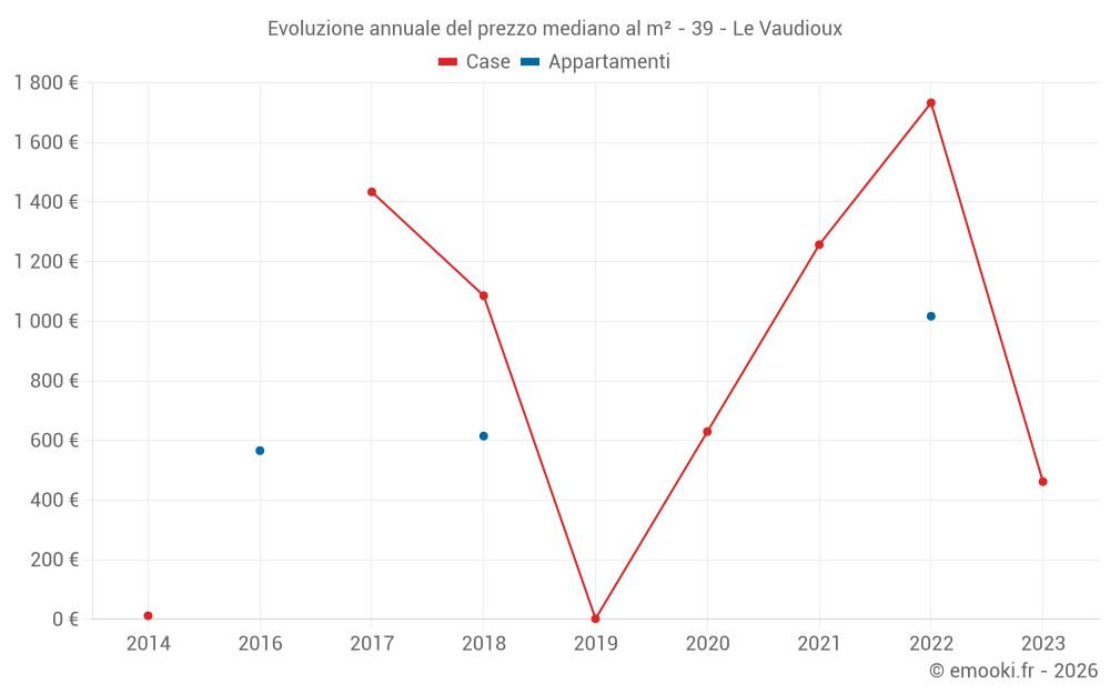 Evoluzione del prezzo mediano al m² degli appartamenti