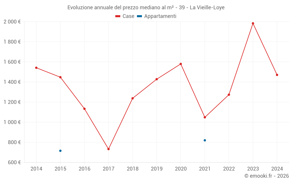 Evoluzione del prezzo mediano al m² degli appartamenti