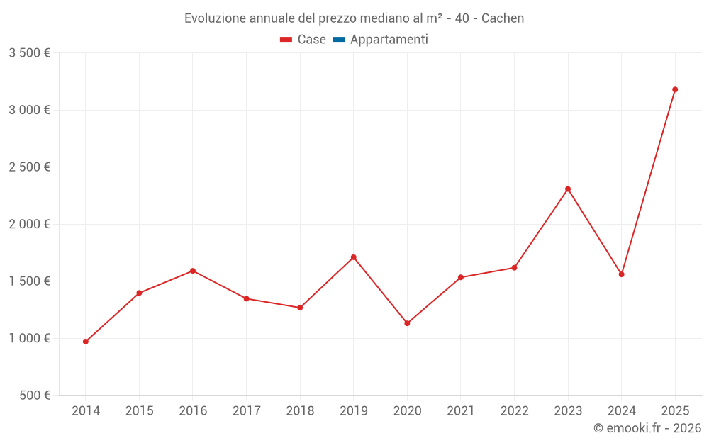 Evoluzione del prezzo mediano al m² degli appartamenti