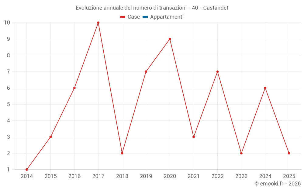 Mappa dei prezzi della casa nel comune di Castandet, scegli una sezione per vedere le transazioni per parcella.