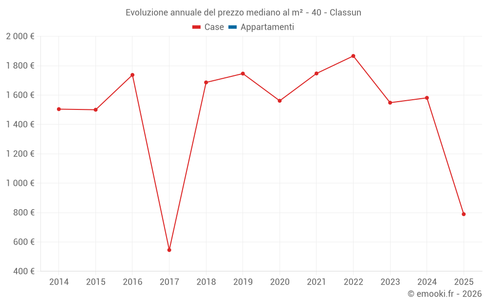 Evoluzione del prezzo mediano al m² degli appartamenti