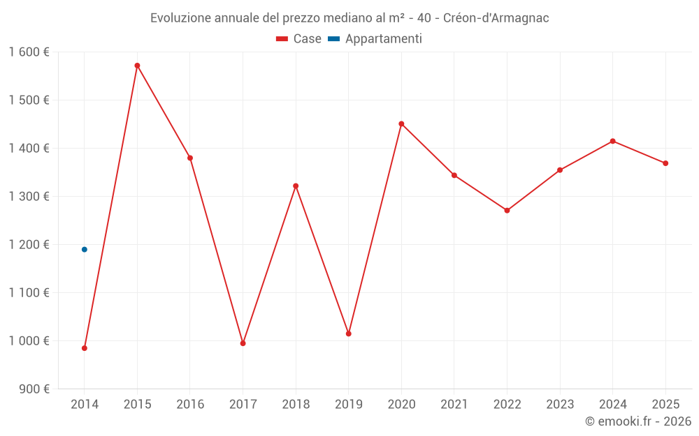 Evoluzione del prezzo mediano al m² degli appartamenti