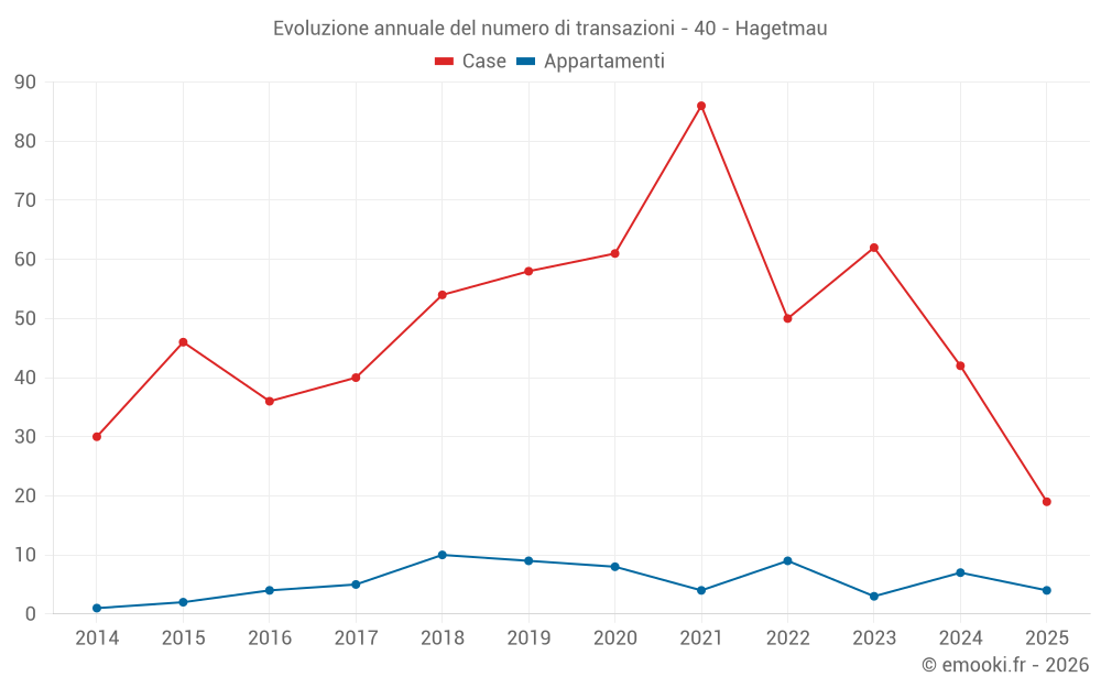 Il prezzo mediano sulle 19 transazioni di case degli ultimi 6 mesi nel comune di Hagetmau era di 1 417 € al metro quadrato per un valore patrimoniale mediano di 166 000 €. In questo periodo il 60% delle transazioni era tra 807 e 1 953 € al metro quadrato (dal 2° all'8° decile).
