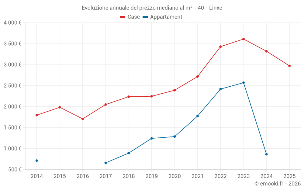 Qual è il prezzo al m2 delle case in Linxe?