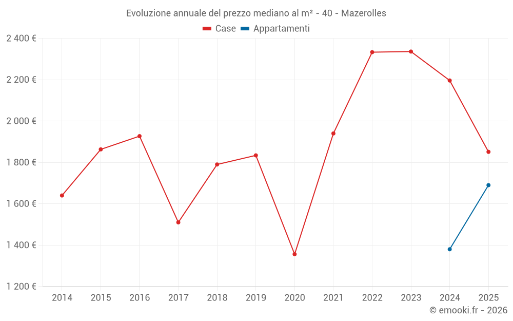 Il prezzo mediano sulle 14 transazioni di case degli ultimi 24 mesi nel comune di Mazerolles era di 2 186 € al metro quadrato per un valore patrimoniale mediano di 320 250 €. In questo periodo il 60% delle transazioni era tra 1 707 e 2 540 € al metro quadrato (dal 2° all'8° decile).