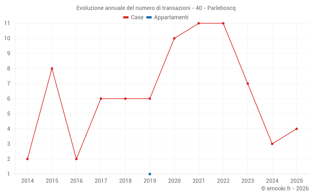 Il prezzo al m² delle case è diminuito del 1.1% da 5 anni, ma è aumentato del 88% in 7 anni.