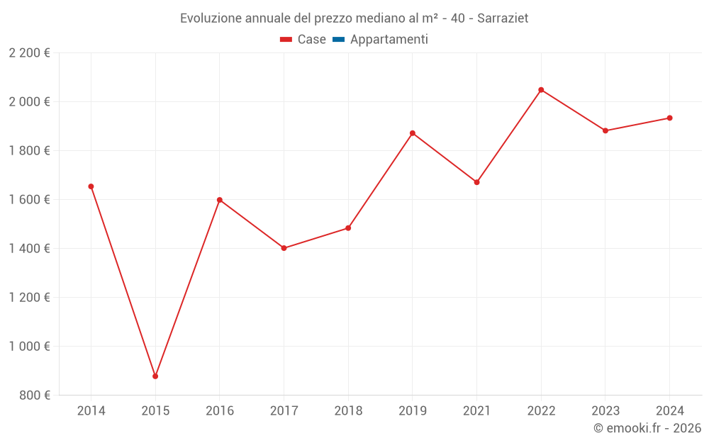 Evoluzione del prezzo mediano al m² degli appartamenti