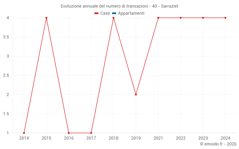 Attenzione, ultimo anno incompleto. Le proiezioni sono effettuate in base alle proporzioni tra semestri dell'anno precedente a livello dipartimentale/nazionale e per tipo di proprietà.
