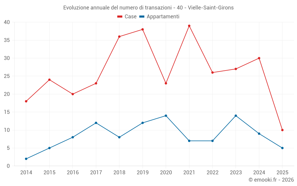 Il prezzo mediano sulle 29 transazioni di case degli ultimi 12 mesi nel comune di Vielle-Saint-Girons era di 3 800 € al metro quadrato per un valore patrimoniale mediano di 276 000 €. In questo periodo il 60% delle transazioni era tra 2 625 e 4 286 € al metro quadrato (dal 2° all'8° decile).