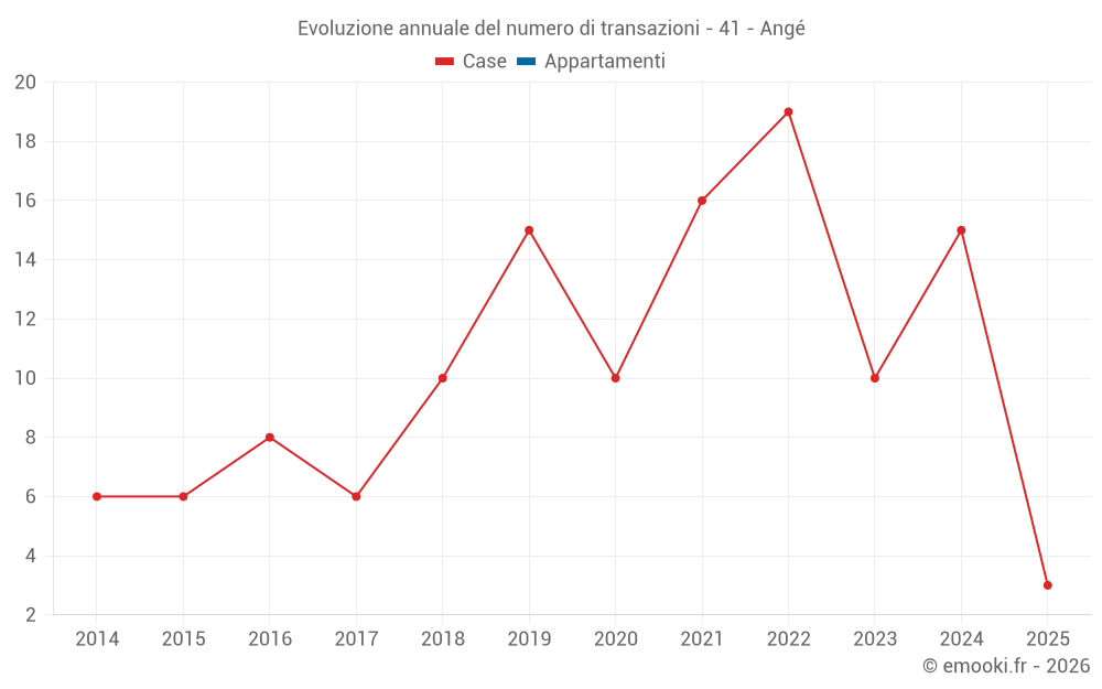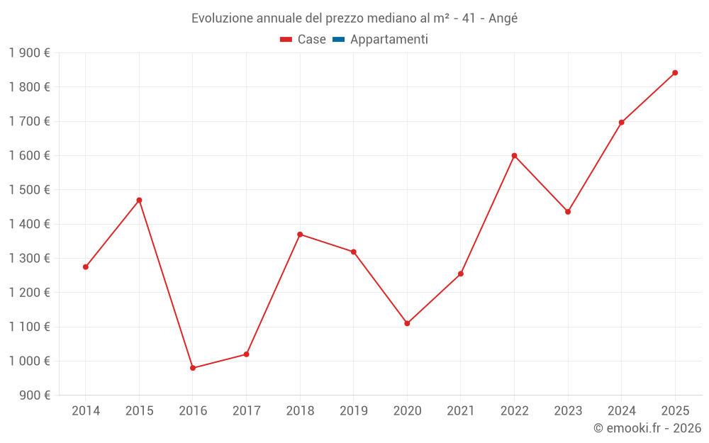 Il prezzo mediano sulle 22 transazioni di case degli ultimi 24 mesi nel comune di Angé era di 1 598 € al metro quadrato per un valore patrimoniale mediano di 152 000 €. In questo periodo il 60% delle transazioni era tra 1 047 e 2 081 € al metro quadrato (dal 2° all'8° decile).