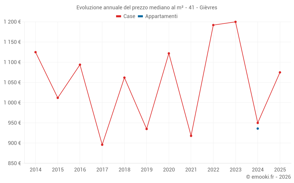 Evoluzione annuale del prezzo mediano al m²