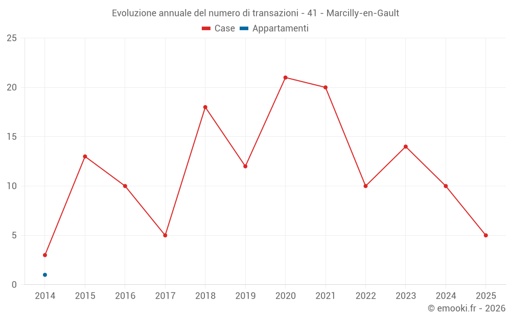 Il prezzo mediano sulle 19 transazioni di case degli ultimi 24 mesi nel comune di Marcilly-en-Gault era di 1 335 € al metro quadrato per un valore patrimoniale mediano di 140 000 €. In questo periodo il 60% delle transazioni era tra 712 e 1 733 € al metro quadrato (dal 2° all'8° decile).