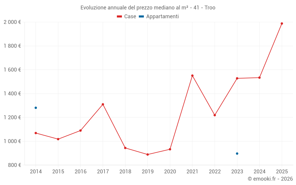 Qual è il prezzo al m2 delle case in Troo?