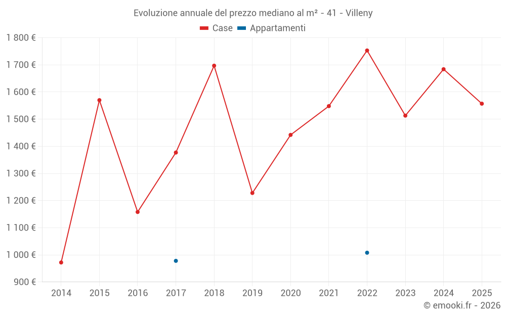 Evoluzione del prezzo mediano al m² degli appartamenti