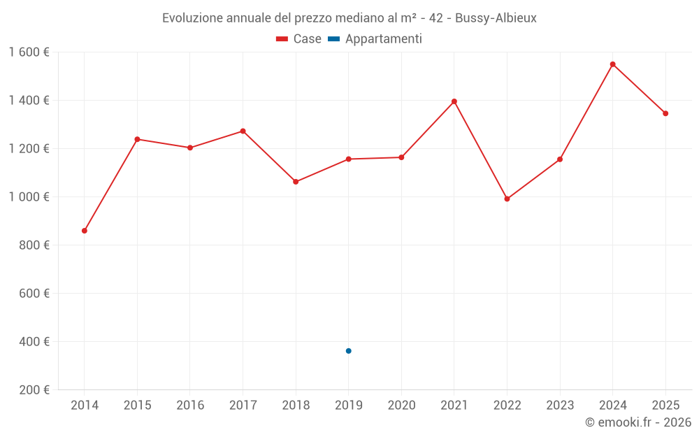 Evoluzione del prezzo mediano al m² degli appartamenti