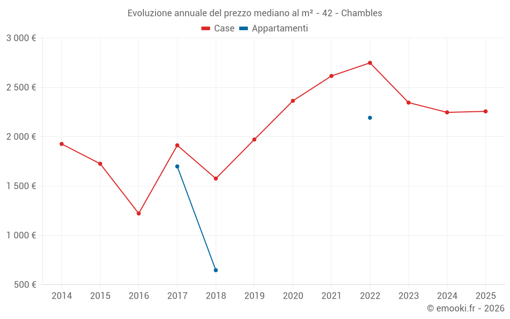 Il prezzo mediano sulle 14 transazioni di case degli ultimi 24 mesi nel comune di Chambles era di 2 370 € al metro quadrato per un valore patrimoniale mediano di 211 700 €. In questo periodo il 60% delle transazioni era tra 2 057 e 2 736 € al metro quadrato (dal 2° all'8° decile).