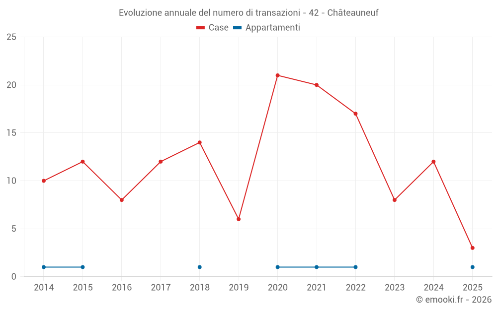 Il prezzo mediano sulle 21 transazioni di case degli ultimi 24 mesi nel comune di Châteauneuf era di 2 846 € al metro quadrato per un valore patrimoniale mediano di 236 850 €. In questo periodo il 60% delle transazioni era tra 1 516 e 3 359 € al metro quadrato (dal 2° all'8° decile).
