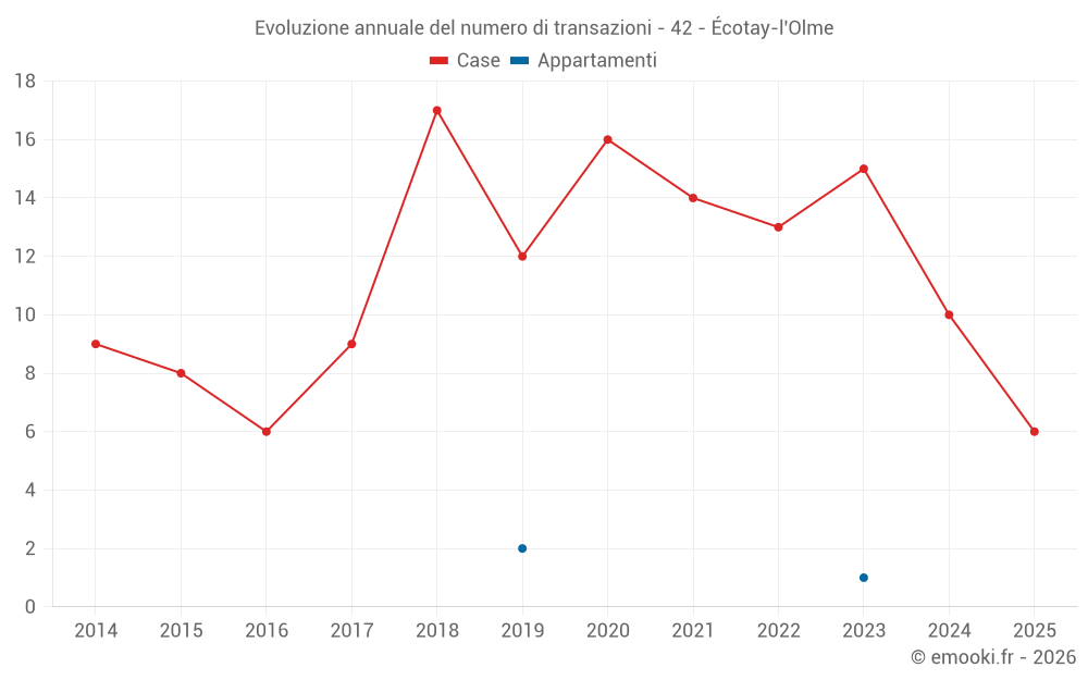 Il prezzo mediano sulle 23 transazioni di case degli ultimi 24 mesi nel comune di Écotay-l'Olme era di 2 570 € al metro quadrato per un valore patrimoniale mediano di 283 700 €. In questo periodo il 60% delle transazioni era tra 1 766 e 2 943 € al metro quadrato (dal 2° all'8° decile).