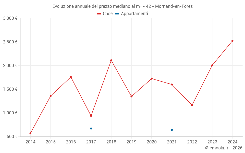 Evoluzione del prezzo mediano al m² degli appartamenti
