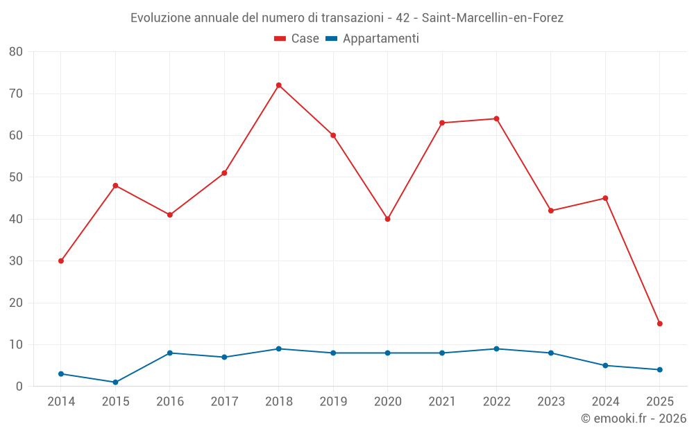 Il prezzo mediano sulle 43 transazioni di case degli ultimi 12 mesi nel comune di Saint-Marcellin-en-Forez era di 2 474 € al metro quadrato per un valore patrimoniale mediano di 244 700 €. In questo periodo il 60% delle transazioni era tra 1 944 e 3 052 € al metro quadrato (dal 2° all'8° decile).