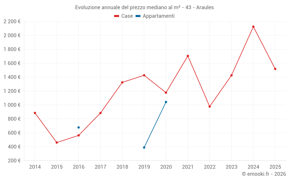 Il prezzo mediano sulle 17 transazioni di case degli ultimi 24 mesi nel comune di Araules era di 1 810 € al metro quadrato per un valore patrimoniale mediano di 180 000 €. In questo periodo il 60% delle transazioni era tra 1 176 e 2 337 € al metro quadrato (dal 2° all'8° decile).