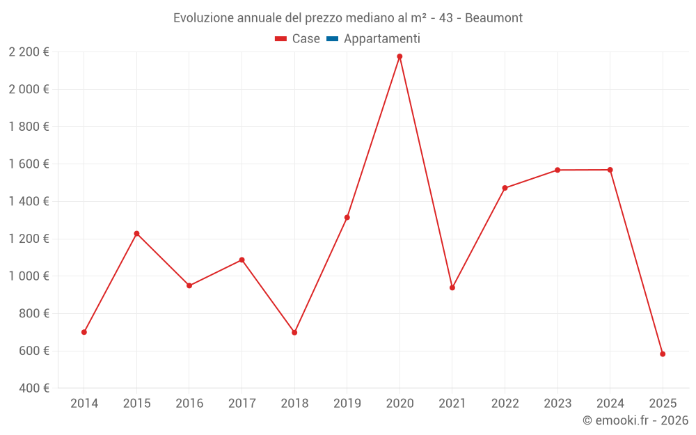 Evoluzione del prezzo mediano al m² degli appartamenti