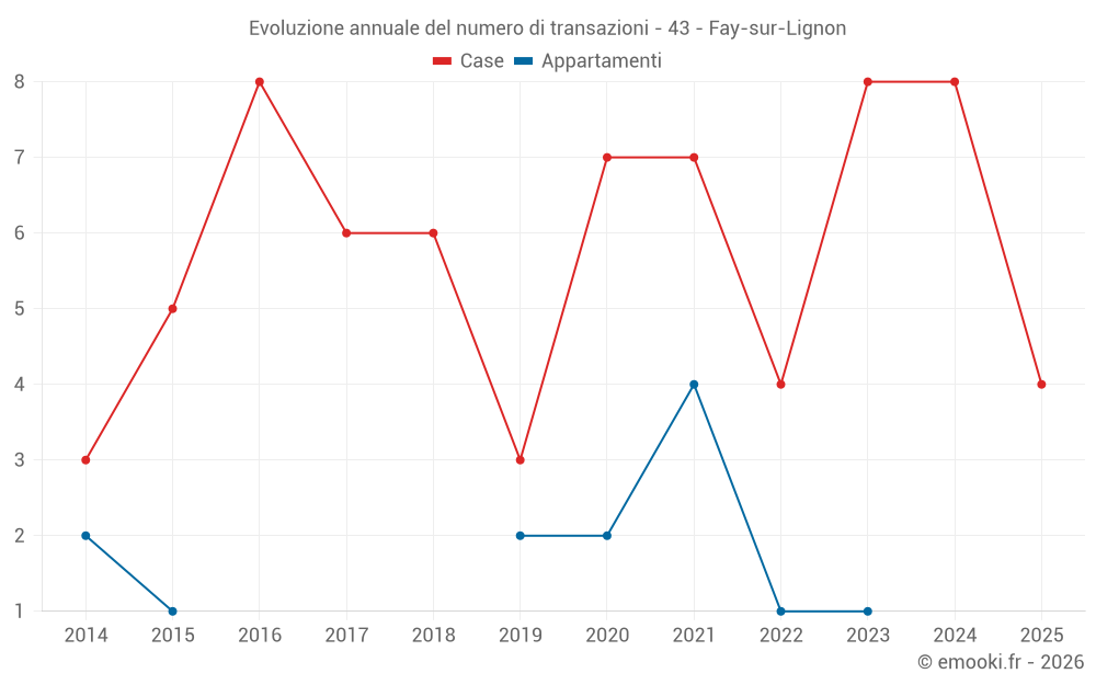 Il prezzo mediano sulle 17 transazioni di case degli ultimi 24 mesi nel comune di Fay-sur-Lignon era di 983 € al metro quadrato per un valore patrimoniale mediano di 72 000 €. In questo periodo il 60% delle transazioni era tra 790 e 1 832 € al metro quadrato (dal 2° all'8° decile).