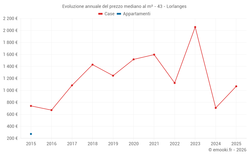 Evoluzione del prezzo mediano al m² degli appartamenti