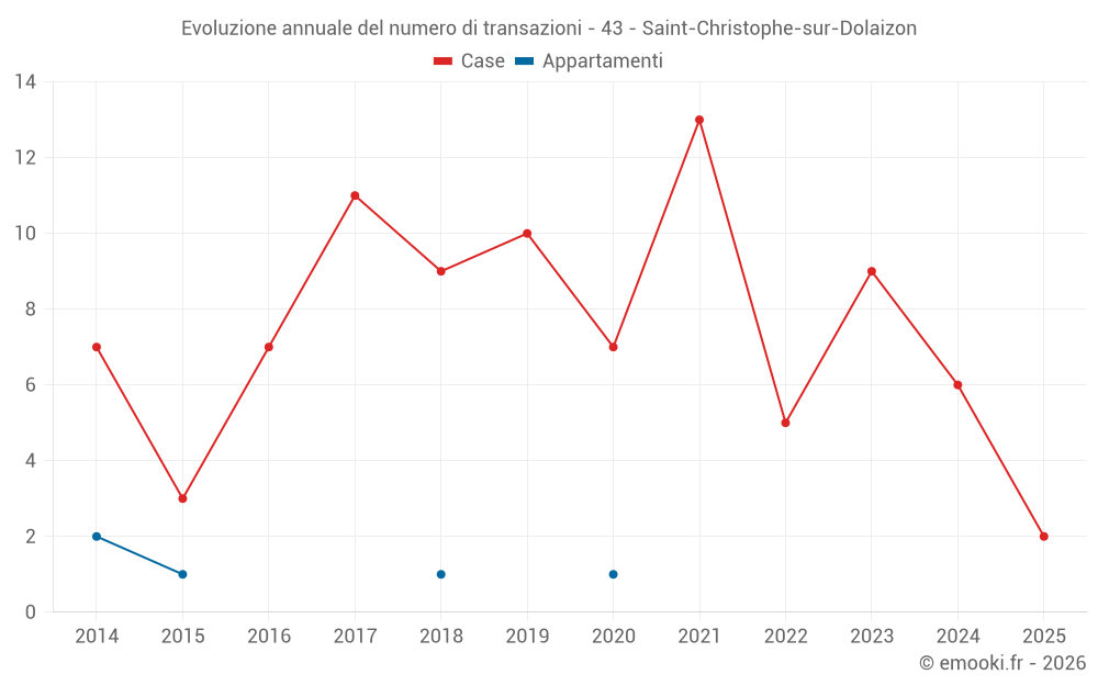 Il prezzo mediano sulle 15 transazioni di case degli ultimi 24 mesi nel comune di Saint-Christophe-sur-Dolaizon era di 1 626 € al metro quadrato per un valore patrimoniale mediano di 147 000 €. In questo periodo il 60% delle transazioni era tra 867 e 2 158 € al metro quadrato (dal 2° all'8° decile).