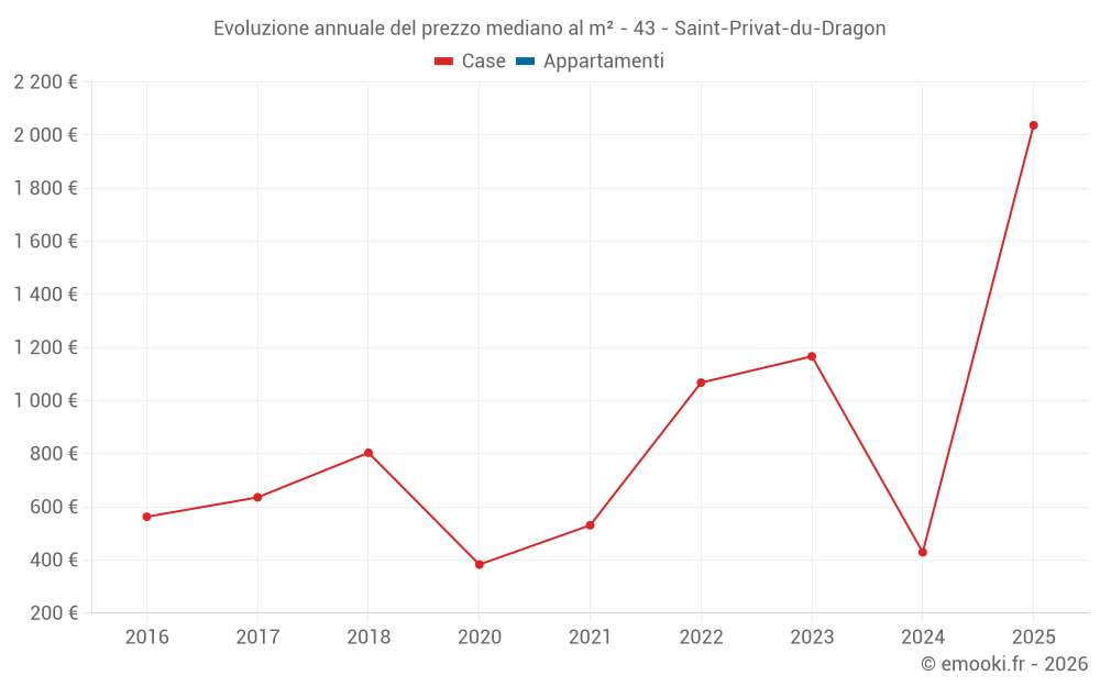 Evoluzione del prezzo mediano al m² degli appartamenti