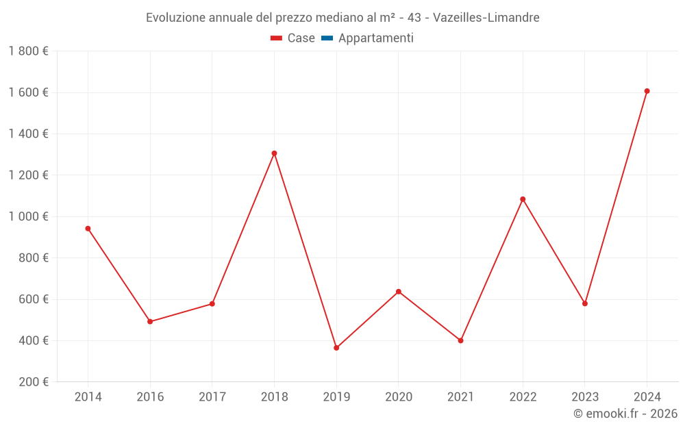 Evoluzione del prezzo mediano al m² degli appartamenti