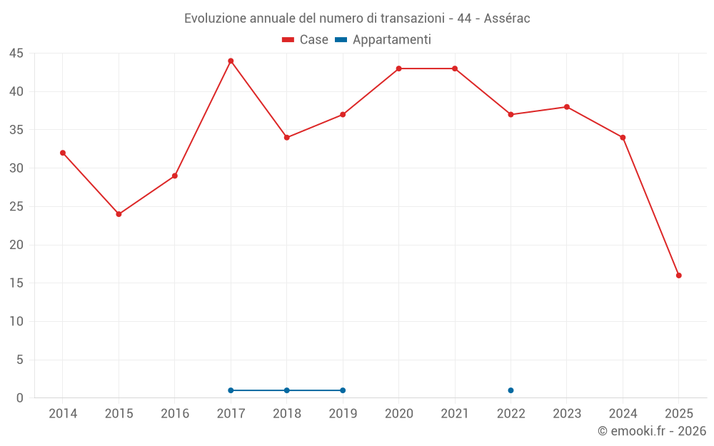 Il prezzo mediano sulle 34 transazioni di case degli ultimi 12 mesi nel comune di Assérac era di 2 854 € al metro quadrato per un valore patrimoniale mediano di 221 000 €. In questo periodo il 60% delle transazioni era tra 1 926 e 3 637 € al metro quadrato (dal 2° all'8° decile).