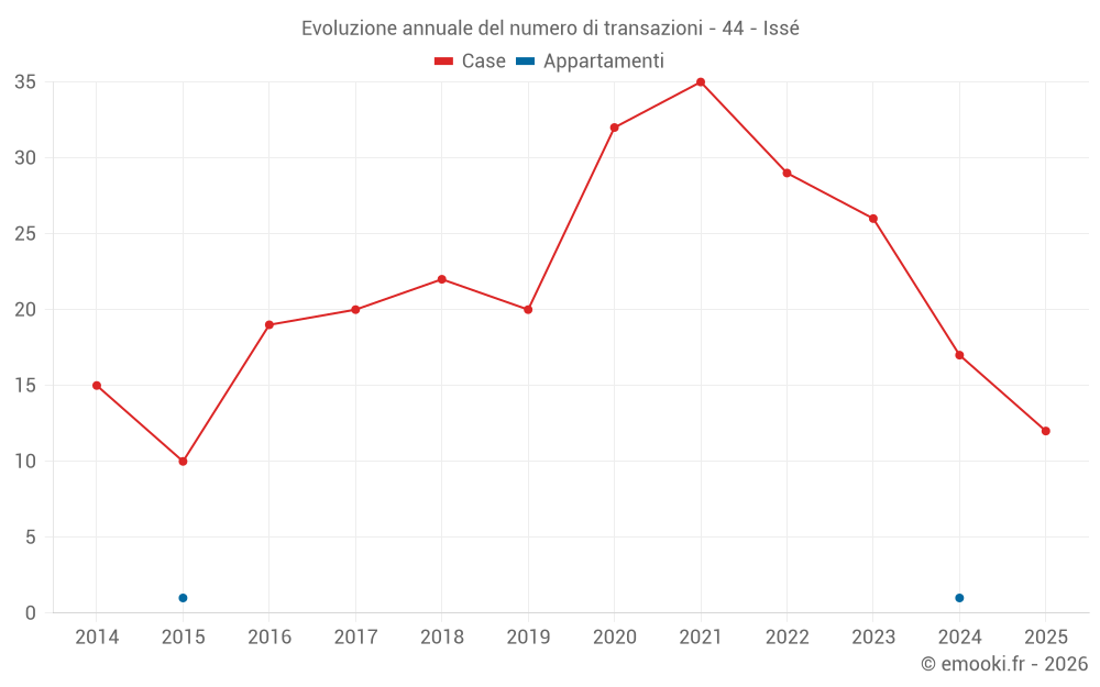 Il prezzo mediano sulle 21 transazioni di case degli ultimi 12 mesi nel comune di Issé era di 1 340 € al metro quadrato per un valore patrimoniale mediano di 142 000 €. In questo periodo il 60% delle transazioni era tra 1 023 e 2 116 € al metro quadrato (dal 2° all'8° decile).
