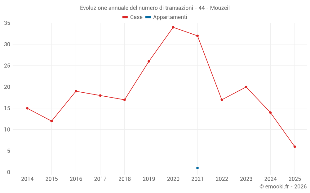 Il prezzo mediano sulle 25 transazioni di case degli ultimi 24 mesi nel comune di Mouzeil era di 1 875 € al metro quadrato per un valore patrimoniale mediano di 210 000 €. In questo periodo il 60% delle transazioni era tra 1 459 e 2 477 € al metro quadrato (dal 2° all'8° decile).