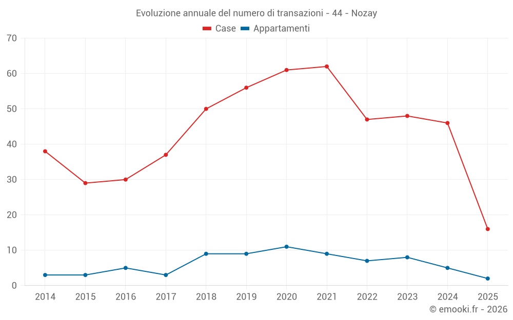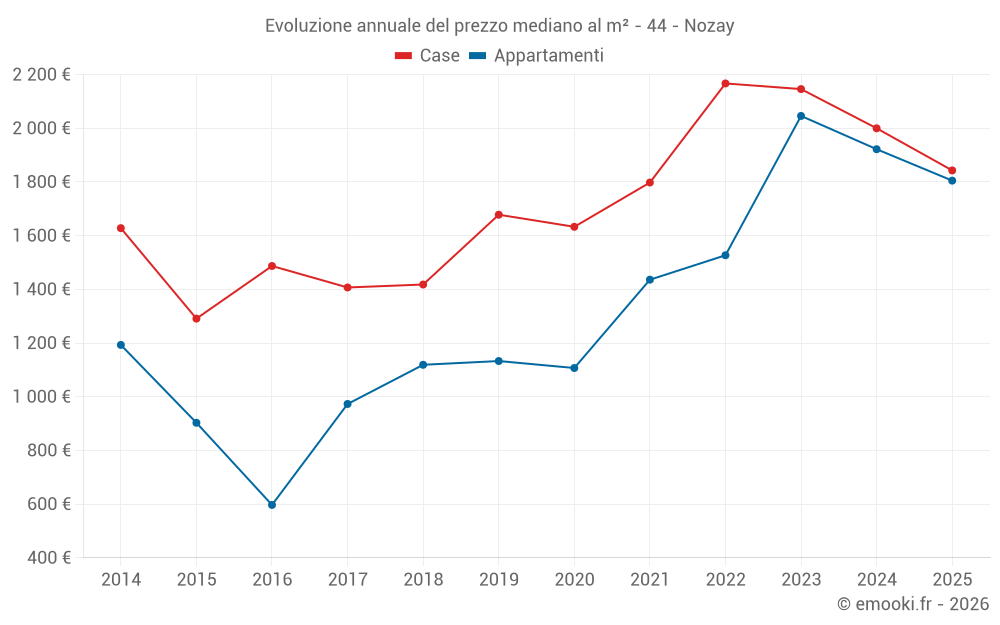 Il prezzo mediano sulle 37 transazioni di case degli ultimi 12 mesi nel comune di Nozay era di 1 854 € al metro quadrato per un valore patrimoniale mediano di 190 000 €. In questo periodo il 60% delle transazioni era tra 1 532 e 2 412 € al metro quadrato (dal 2° all'8° decile).