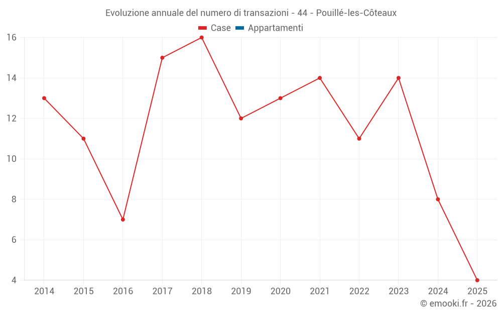 Il prezzo mediano sulle 20 transazioni di case degli ultimi 24 mesi nel comune di Pouillé-les-Côteaux era di 1 790 € al metro quadrato per un valore patrimoniale mediano di 185 000 €. In questo periodo il 60% delle transazioni era tra 1 281 e 2 510 € al metro quadrato (dal 2° all'8° decile).