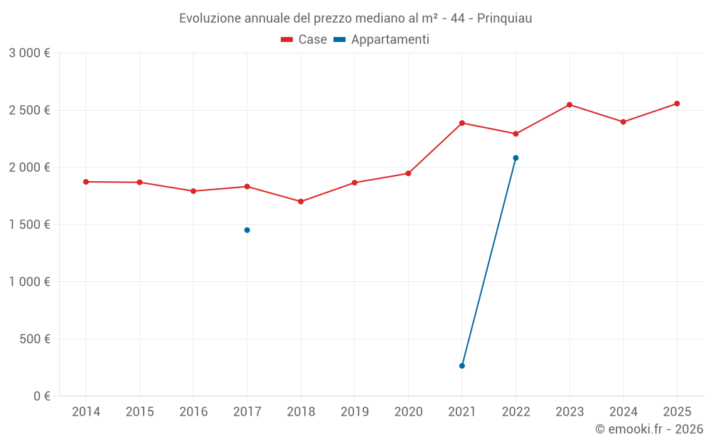 Qual è il prezzo al m2 delle case in Prinquiau?