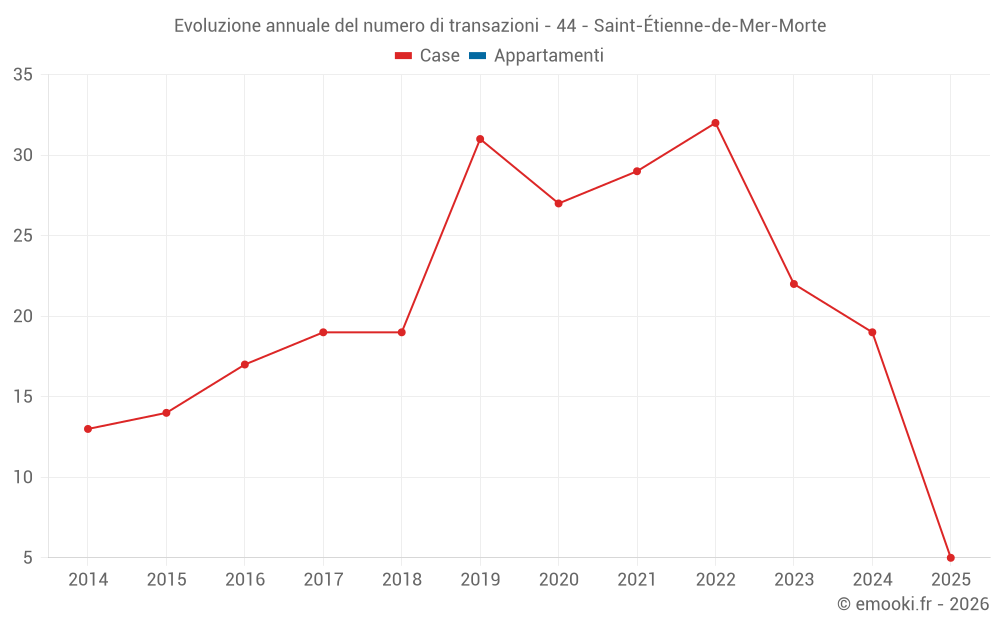 Il prezzo mediano sulle 16 transazioni di case degli ultimi 12 mesi nel comune di Saint-Étienne-de-Mer-Morte era di 1 895 € al metro quadrato per un valore patrimoniale mediano di 140 000 €. In questo periodo il 60% delle transazioni era tra 1 325 e 2 627 € al metro quadrato (dal 2° all'8° decile).
