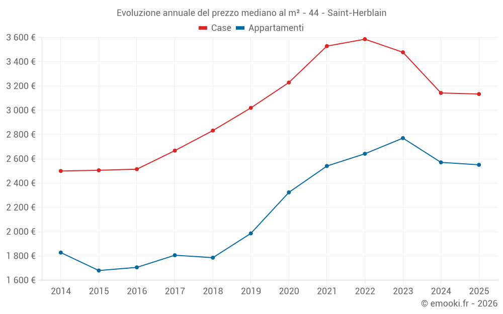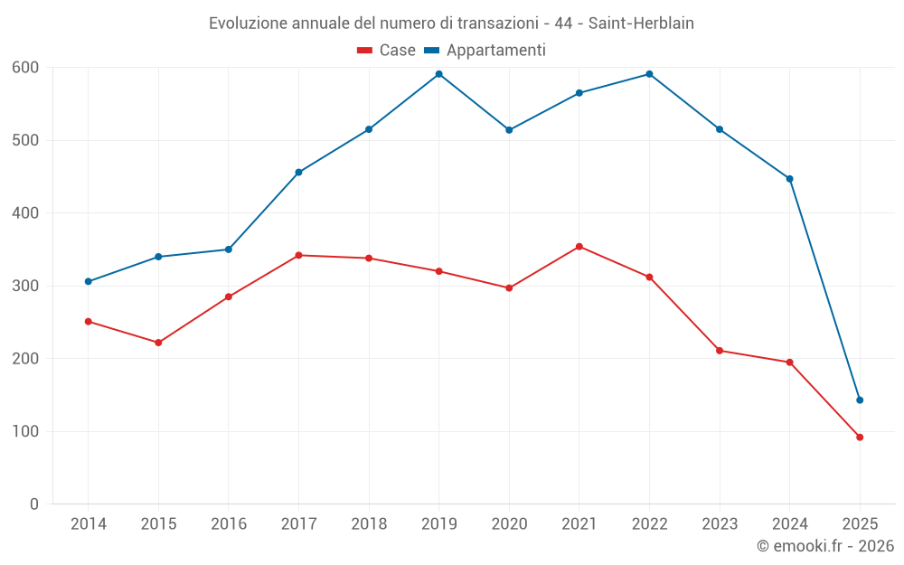 Il prezzo mediano sulle 92 transazioni di case degli ultimi 6 mesi nel comune di Saint-Herblain era di 3 134 € al metro quadrato per un valore patrimoniale mediano di 281 550 €. In questo periodo il 60% delle transazioni era tra 2 603 e 3 764 € al metro quadrato (dal 2° all'8° decile).